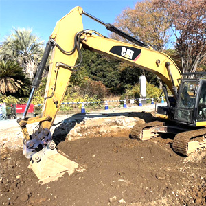 昭和記念公園内にて、RC造2階建管理棟の解体工事を実施いたしました。 建物基礎は図面よりも深く埋設されており、通常工法での撤去が困難だったため、重機搬入および安全確保を目的としたスロープを作成。 作業動線を確保し、安全第一で基礎撤去を行いました。